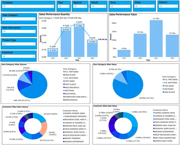 2. Sales Performance – Value (Year / Quarter / Month wise amount)